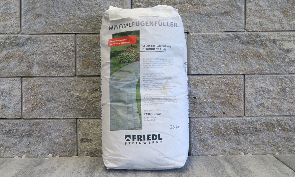 - A Friedl ásványi fugakitöltő természetes, mosott, szitált és kemencében szárított, növényi-ásványi kötőanyagú gyomosodásgátló homok. A kötőanyag nem tartalmaz polimer és cementalapú összetevőket. A Friedl ásványi fugakitöltőt kötőanyag nélküli ágyazatban használják a vízáteresztő fugarendszerekhez.