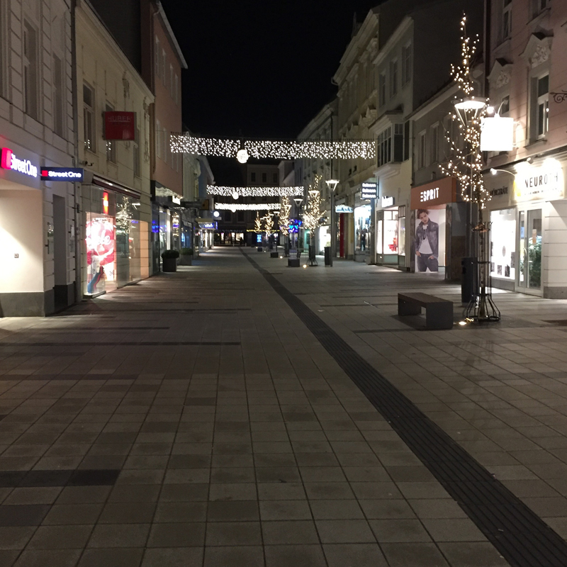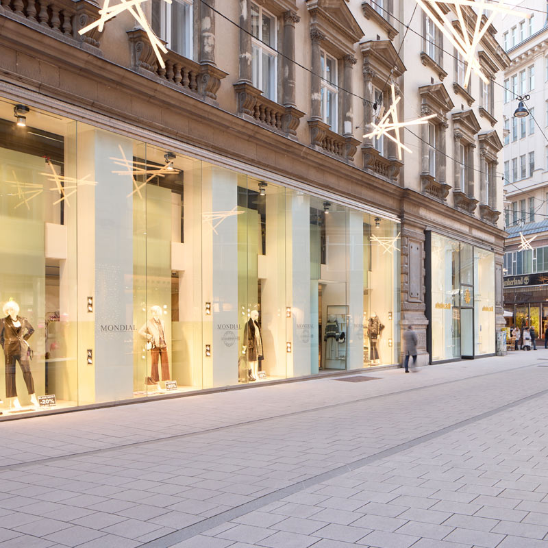 Míg ehhez a projekthez a Friedl Steinwerke standard színpalettájából választották a színeket, a formátumok túlnyomó részét egyedileg készítette a burgenlandi térkőgyártó. Összesen mintegy 8650 m2, innovatív anyagból (betonból) készült kő teszi vonzó bevásárlóutcává és sétánnyá a Wiener Straße és néhány kiválasztott mellékutca alkotta sétálóutcát.
