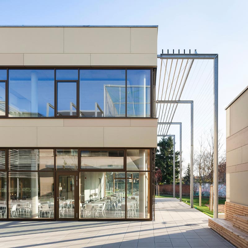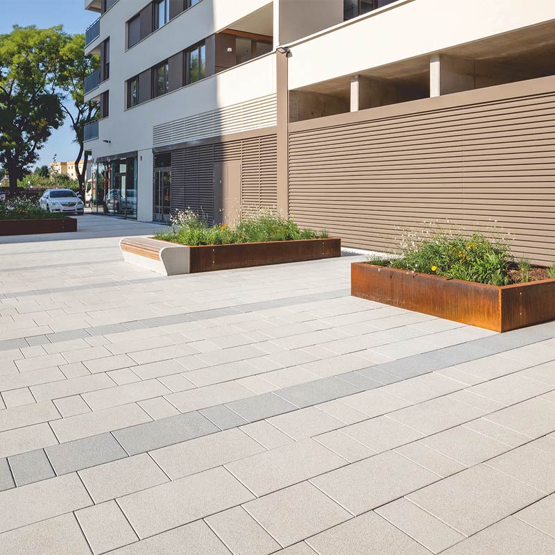 Óvodák, iskolák, főiskolák és egyetemek – az építkezések és a felújítások során nagy jelentőséget tulajdonítanak az előkertek és belső udvarok kialakításának. A campus, azaz az egyetemek vagy főiskolák területe sokszor az egész városnegyed szempontjából meghatározó. Sok esetben a térkőburkolat az összekötő elem, mely nagyban hozzájárul az oktatási intézmény vonzó összképéhez.