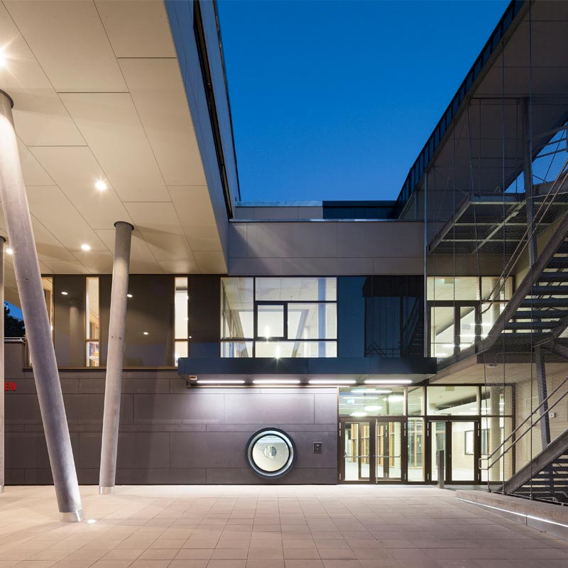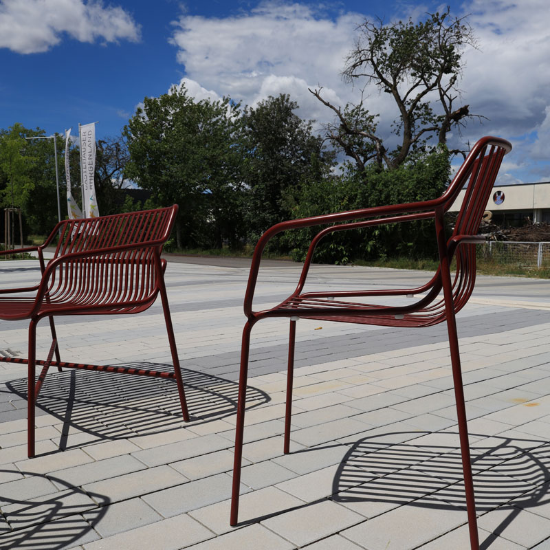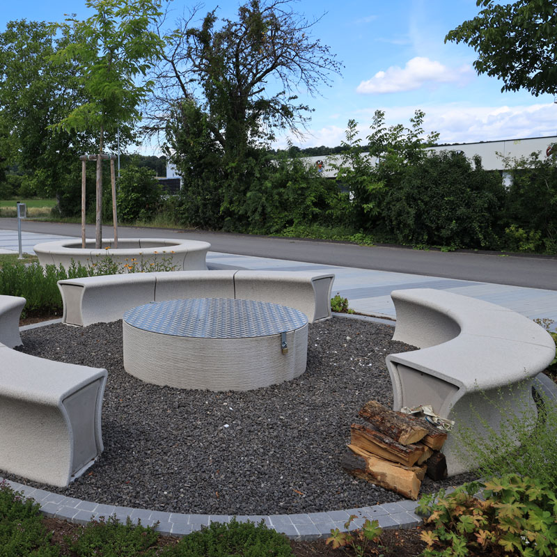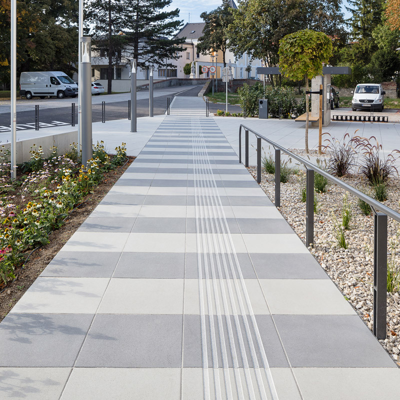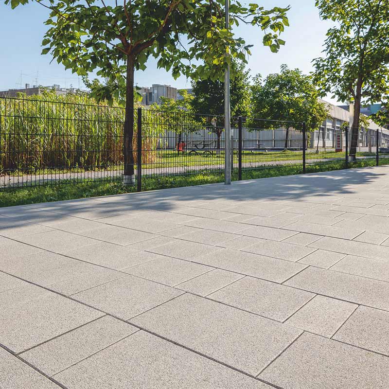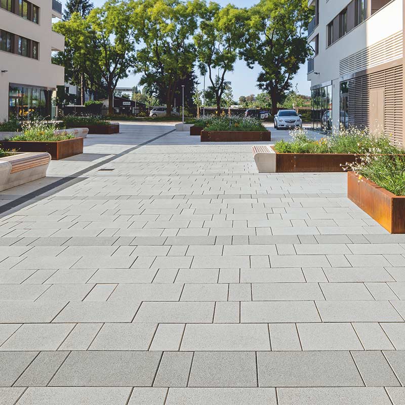 Az egyetem területén használt, Friedl Steinwerke által gyártott térkövek és nagy méretű lapok VG4 elmozdulásgátlóval vannak ellátva, ami a köveknek szilárd rögzítést biztosít, a fuga pedig nagy igénybevétel esetén és hosszú távon is egyenletes, esztétikus marad. A terhelhetőség mellett a betonkövek további előnye a csúszásmentesség, az egyszerű gondozás, valamint a fenntarthatóság és az újrahasznosíthatóság. A térkőfelületek életciklusköltségei – az anyag előállításától az élettartam végén történő újrahasznosításig – a térkő mellett szólnak.